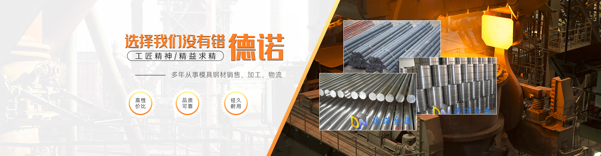 東莞市德諾金屬鋼鐵有限公司成立于2010年,立足于珠江三角洲,是一家集多家進口優(yōu)質模具鋼材銷售批發(fā)及機加工服務于一體的大型企業(yè)。公司投大量資金與世界著名鋼廠簽立優(yōu)特鋼經(jīng)銷權,銷售國內著名鋼廠不銹鋼產(chǎn)品 經(jīng)銷國際著名鋼廠進口產(chǎn)品。